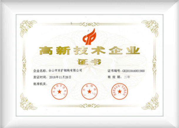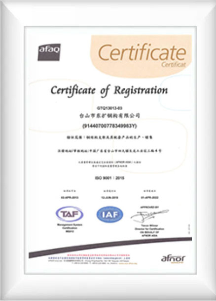 台山市东扩钢构有限公司位于广东,台山,工厂占地16528平方米,配备了现代化高智能的生产设备,致力于脚手架和支撑系统的生产与研发,并且通过了ISO9001的认证。